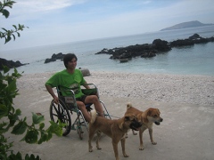 For villagers on Be Islet in the central province of Quang Ngai, the sight of two dogs pulling a young man on a wheelchair is a familiar one.