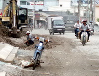 Many asphalted roads in Ho Chi Minh City center have been improved and repaired, while the quality of some roads in the suburbs of the city have become seriously damaged, with few repairs done for many years. In March, 2007, work on Dang Van Bi Street, Thu Duc District, was begun to repair and upgrade the roads after years of deteriorating quality. The work was expected to be completed March this year but it still remains incomplete... |